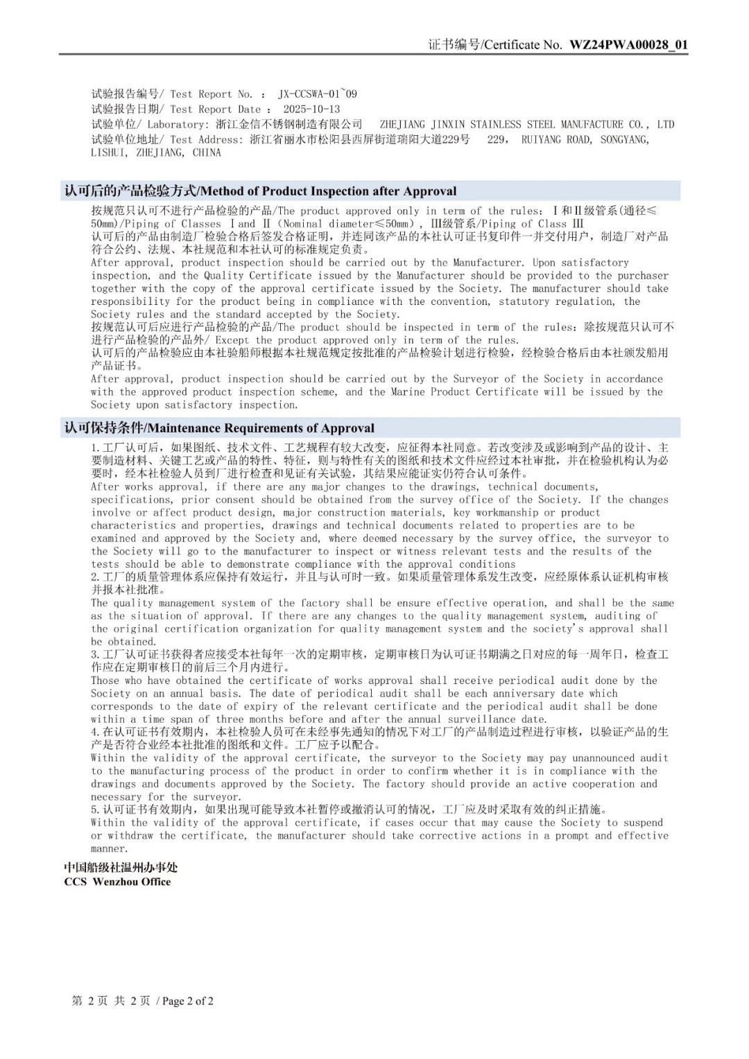喜报!金信不锈钢斩获 CCS 中国船级社认证,向海图强再启新程